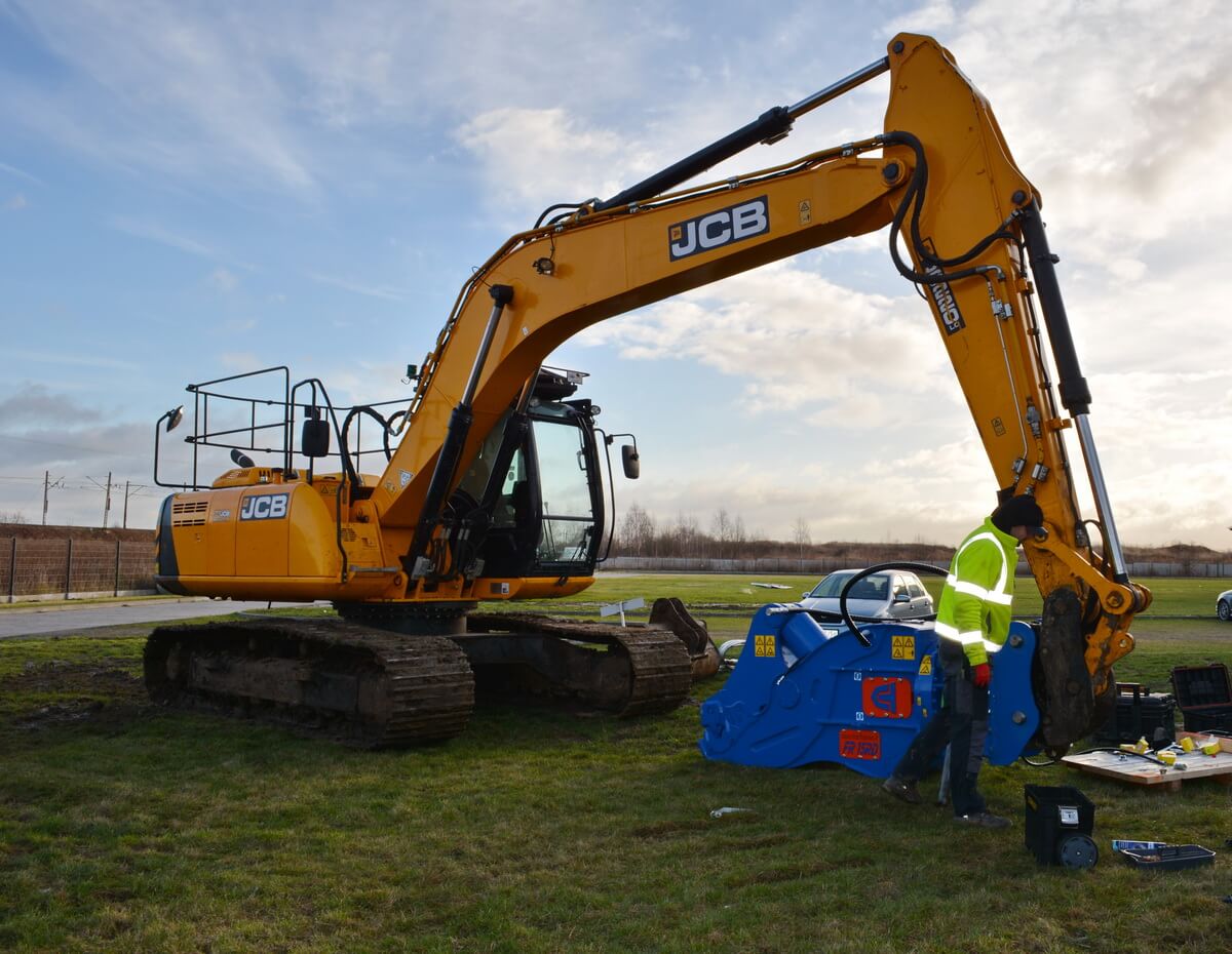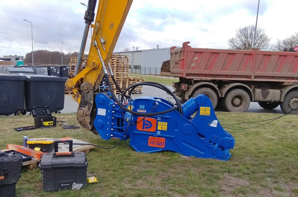 Niezawodny zestaw – koparka JCB 220 + nasze szczęki kruszące FR 15 RD (1940 kg). Przeprowadziliśmy sprawny montaż i uruchomienie :) Klientowi życzymy niezawodnej pracy!