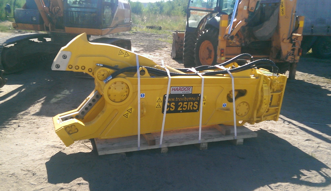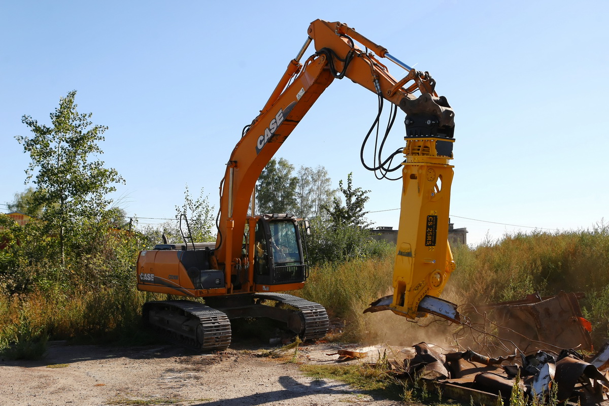 Kolejne nożyce do cięcia stali trafiły właśnie do naszego klienta z Południa Polski. Tym razem wybór padł na model CS 25 RS o wadze 2350 kg. Nożyce zamontowane zostały na koparce CASE CX 210B. Szczęki wykonane ze stali HARDOX HiTuf oraz innowacyjny system zapobiegający blokowaniu się ciętego materiału to gwarancja wytrzymałości i niezawodności! Naszemu klientowi gratulujemy najlepszego wyboru!