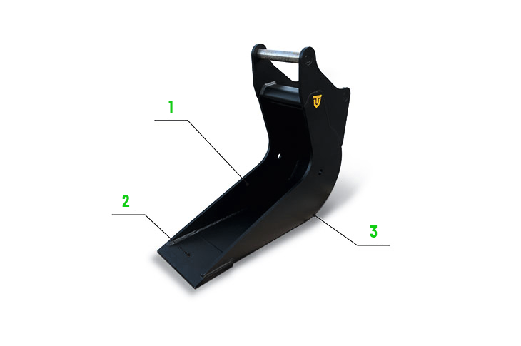 1. Łyżka z wydłużonym profilem zaprojektowanym do pracy pod rurami podziemnymi. Przeznaczona do prac konserwacyjnych i czyszczenia (drogi, place budów)